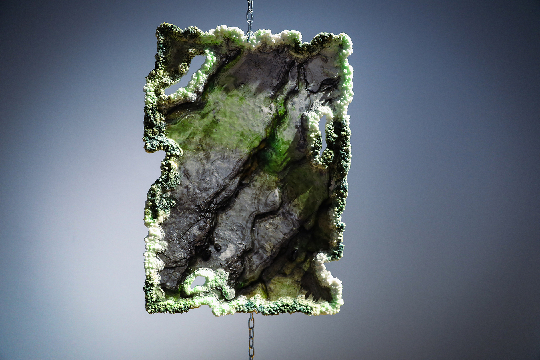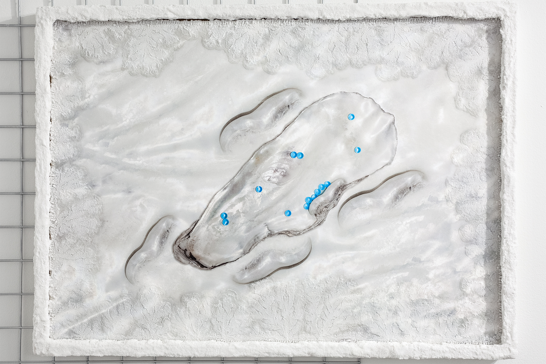 Kristina Õllek. They breathe water. Bioaccumulation no.3: Acrylic Ostreoidea, 2019. View from the solo exhibition Filter Feeders, Double Binds & Other Silicones at Draakoni gallery, Tallinn, Estonia, 2020. Photo by Kristina Õllek