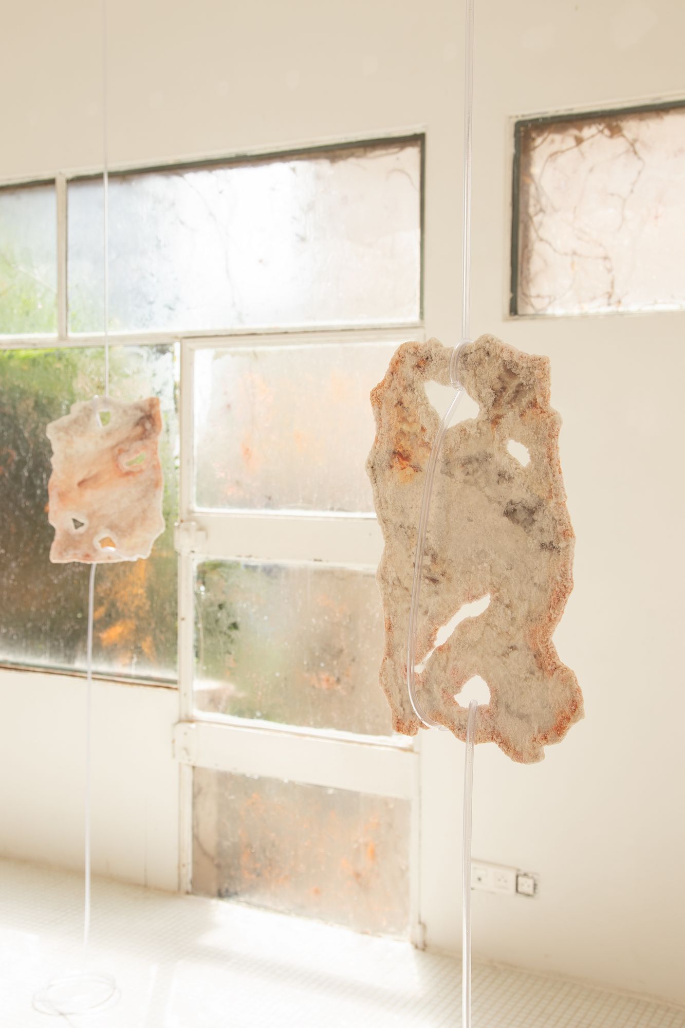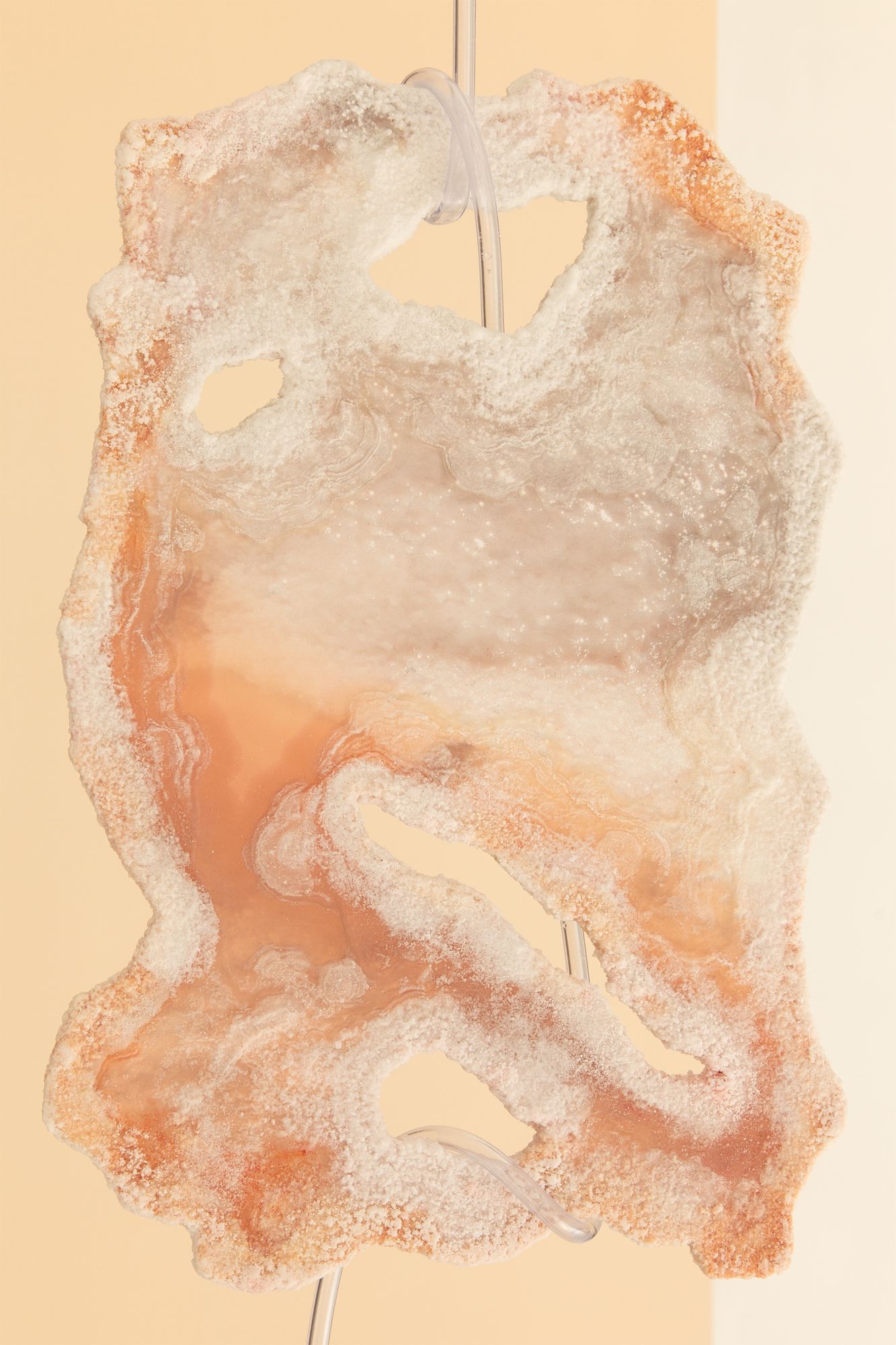 Inkjet prints with grown sea salt from Camargue (pigments, transparent hose, sea salt). Edition of 1/3 + 2 AP